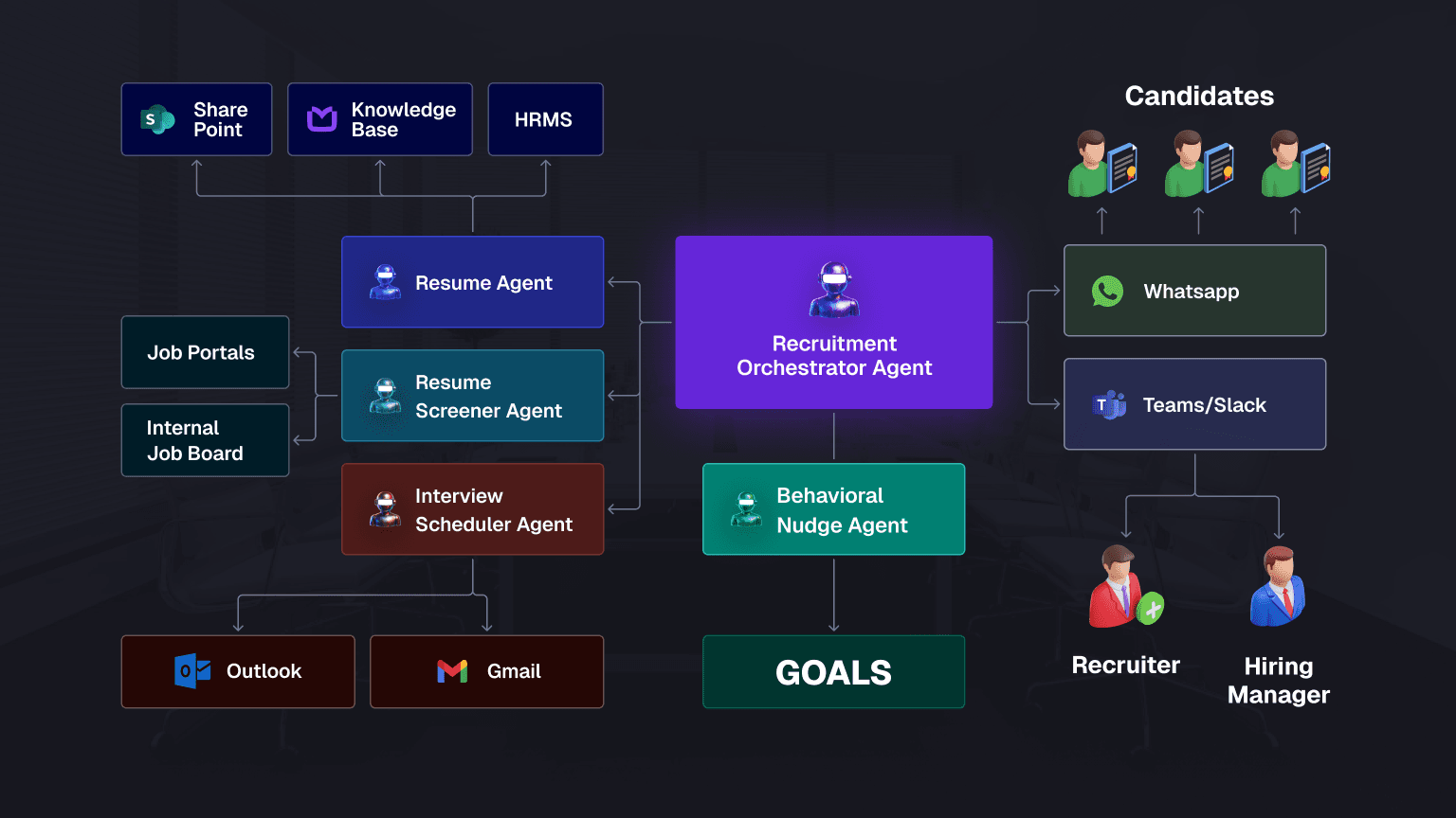 This is where Agentic AI changes the equation. Instead of automating single tasks, intelligent agents orchestrate the entire hiring lifecycle.