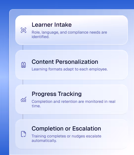 Mandatory and role-based trainings are generic, hard to follow, and poorly adopted across frontline and multilingual teams.